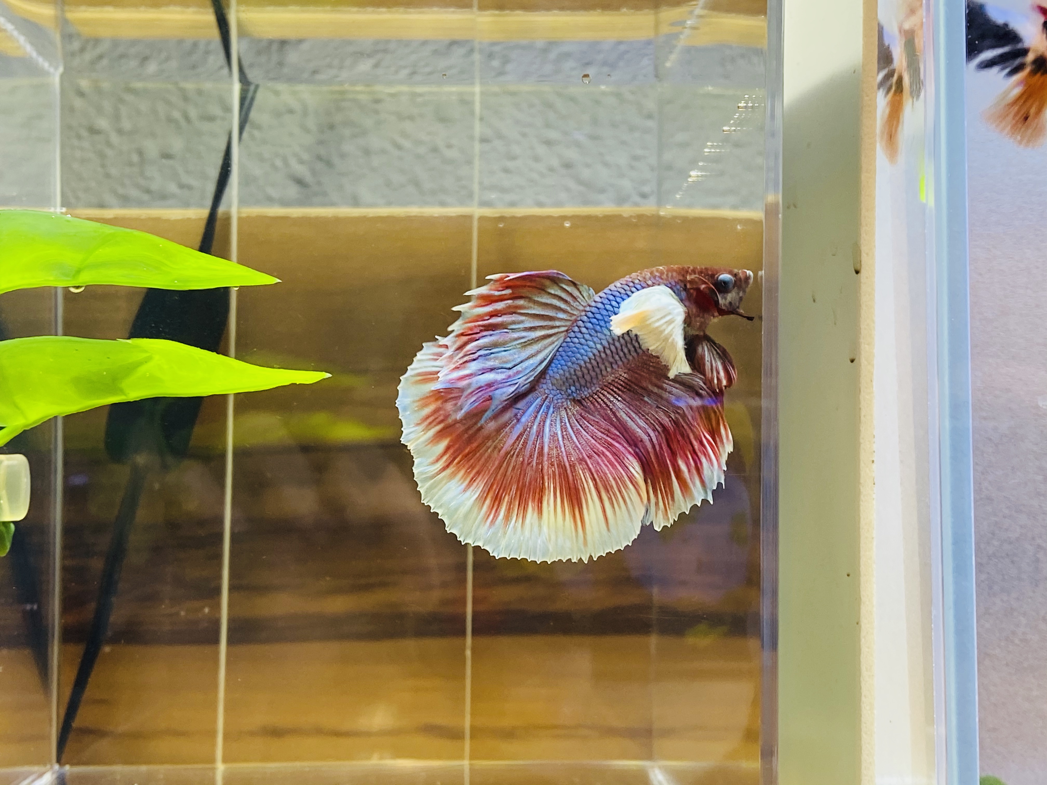 이미 화려한 물고기로 유명한 베타도 있었어요. 처음 베타를 알게됐을 때는 지느러미가 엄청 화려하고 예뻐서 세상에 이런 물고기가 있나 싶었어요.