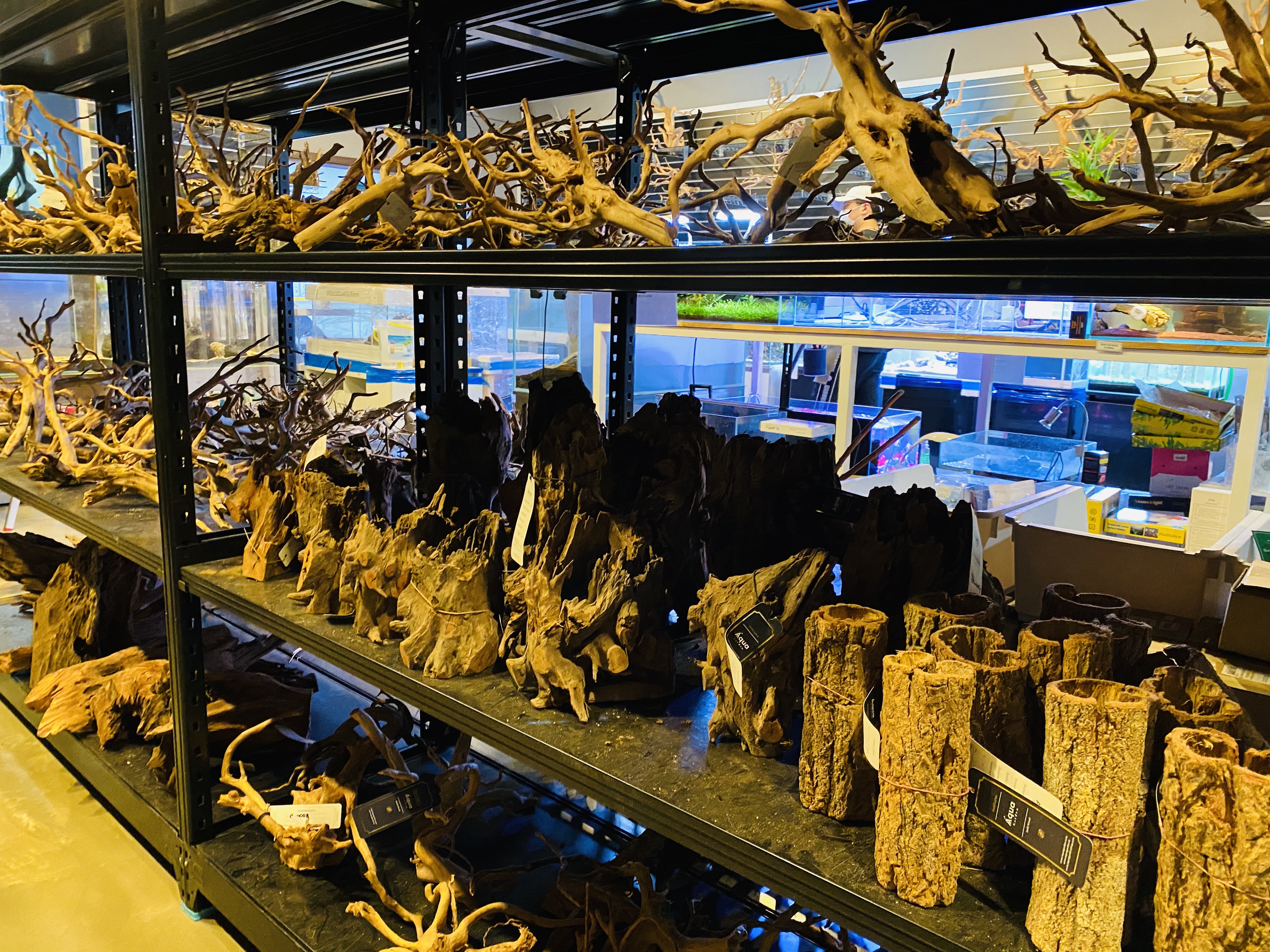 거북이 수조처럼, 물 속을 꾸밀 수 있는 나무와 돌들도 엄청 많았어요. 사이즈별 수조도 판매하고 있었는데, 꽤 작은 사이즈도 있어서 작은 물고기 몇마리만 키울 분들도 원하는 사이즈를 찾을 수 있을 것 같아요.