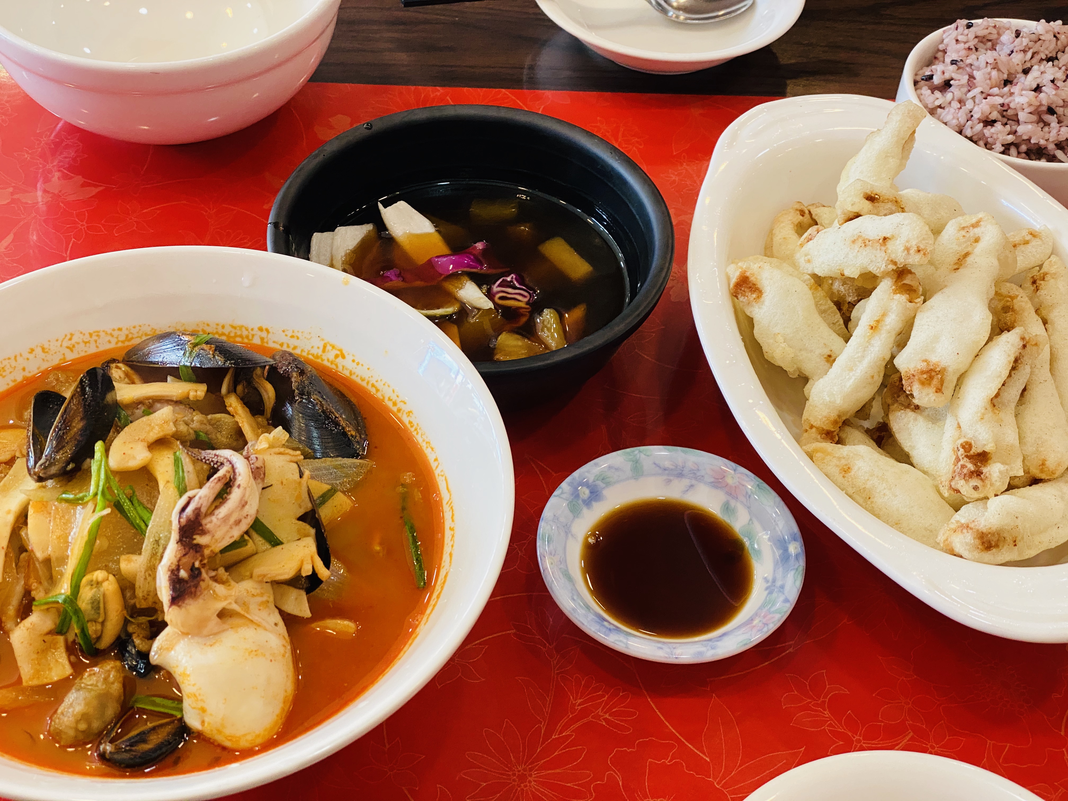 일단 '해물짬뽕'은 해물과 면의 양이 어마어마했어요ㅎㅎ 홍합, 오징어, 제가 좋아하는 오도독 미더덕으로 국물을 내어 깊고 시원한 맛이었어요.