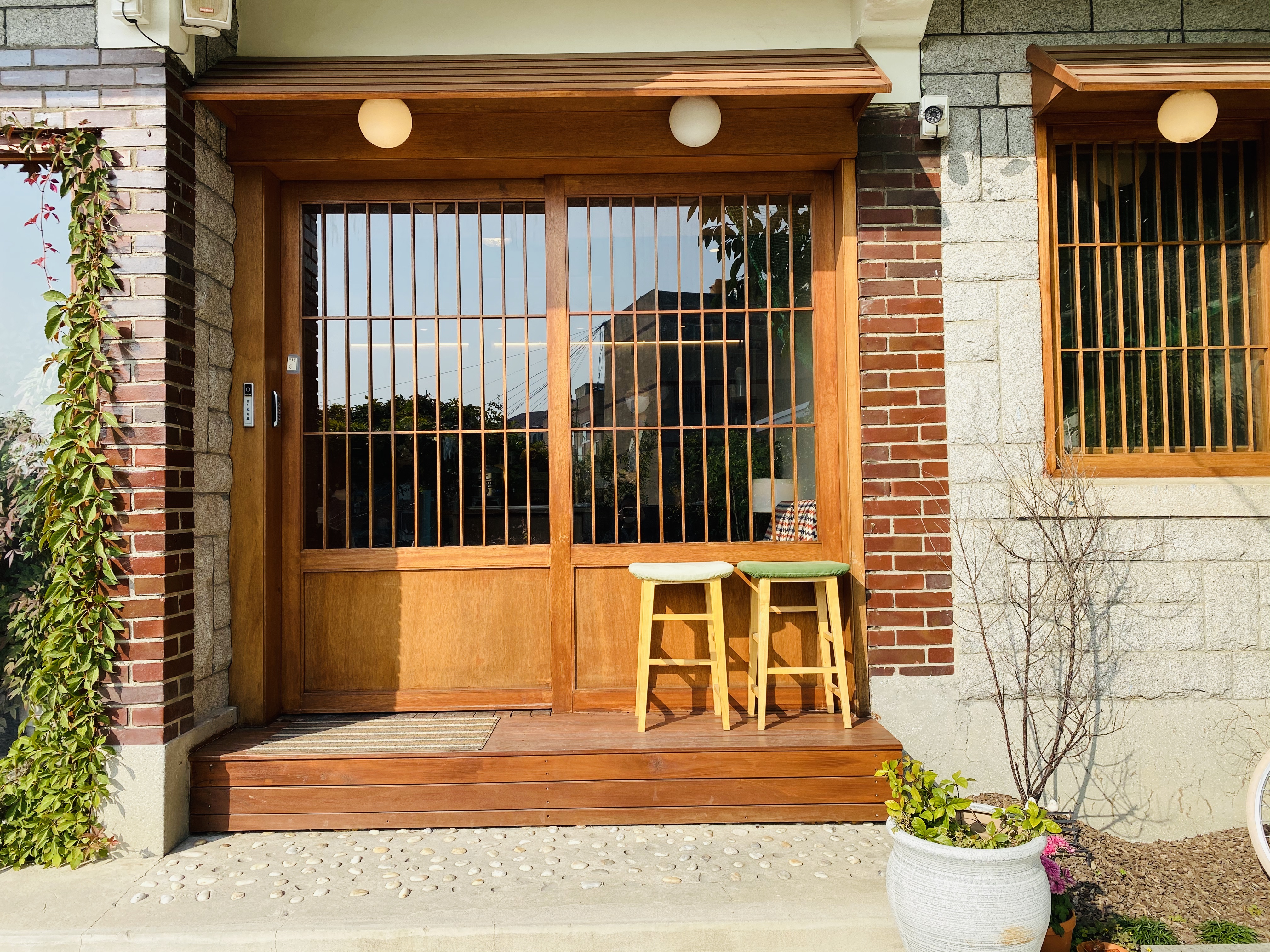 아마도 오래된 주택을 개조해서 만들어, 할머니댁 가는 것처럼 낯설지가 않았어요. 하늘색 대문과 하얀 자갈 정원, 일본식 목재 창틀과 문이 편안한 듯 정갈하고 세련된 느낌을 줍니다. '아키라 커피'라는 이름처럼 일본 분위기가 물씬 풍기는 곳이에요.