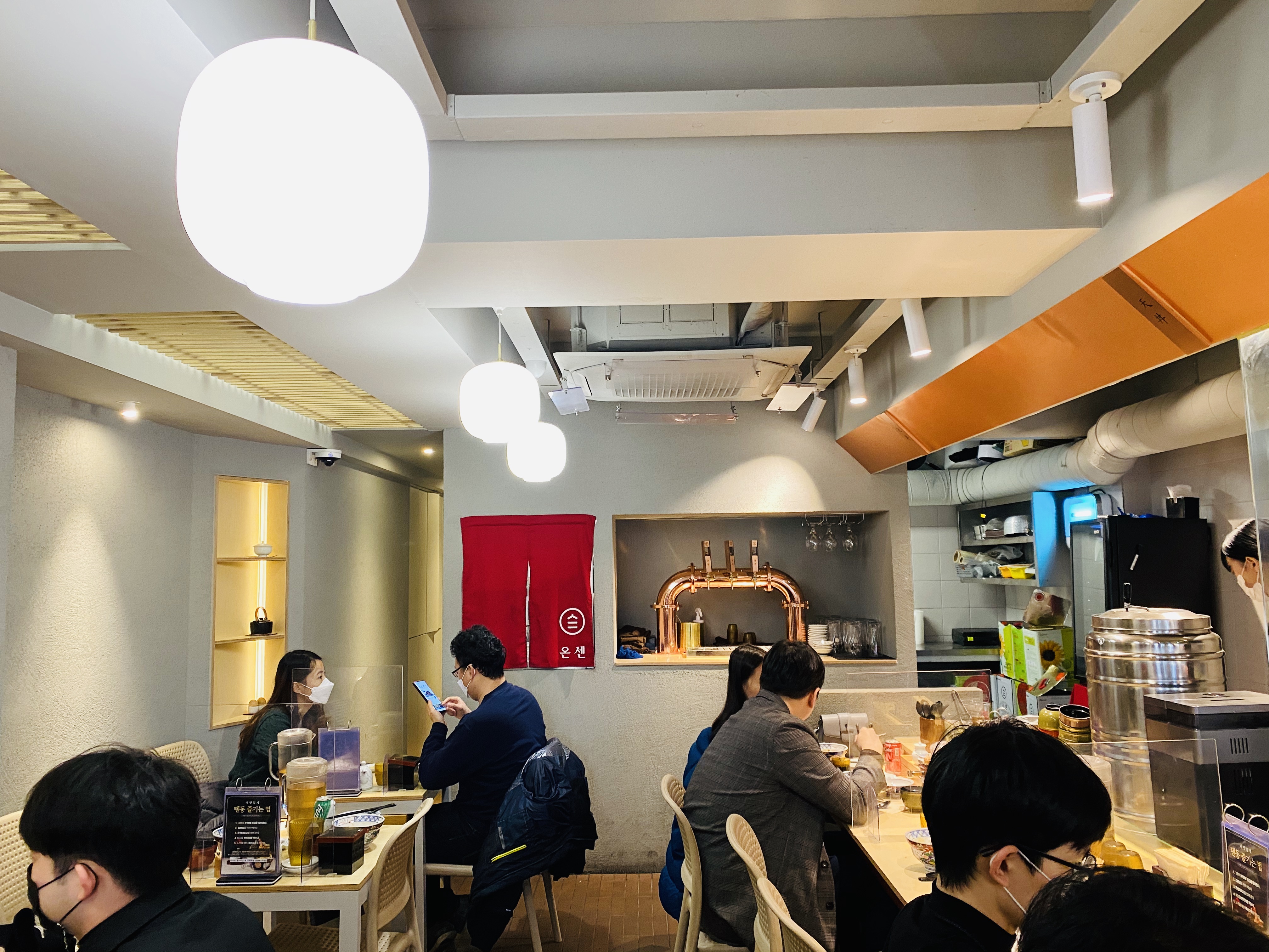정갈하게 쓰인 '온센' 간판부터 마음을 설레게 하네요. 저희는 오전 11시쯤 방문했는데 다행히 대기 인원이 없어 바로 자리에 앉을 수 있었습니다. (식사하고 나왔을 때는 딱 점심시간이어서 그런지 밖에서 기다리는 분들이 꽤 있었어요.)