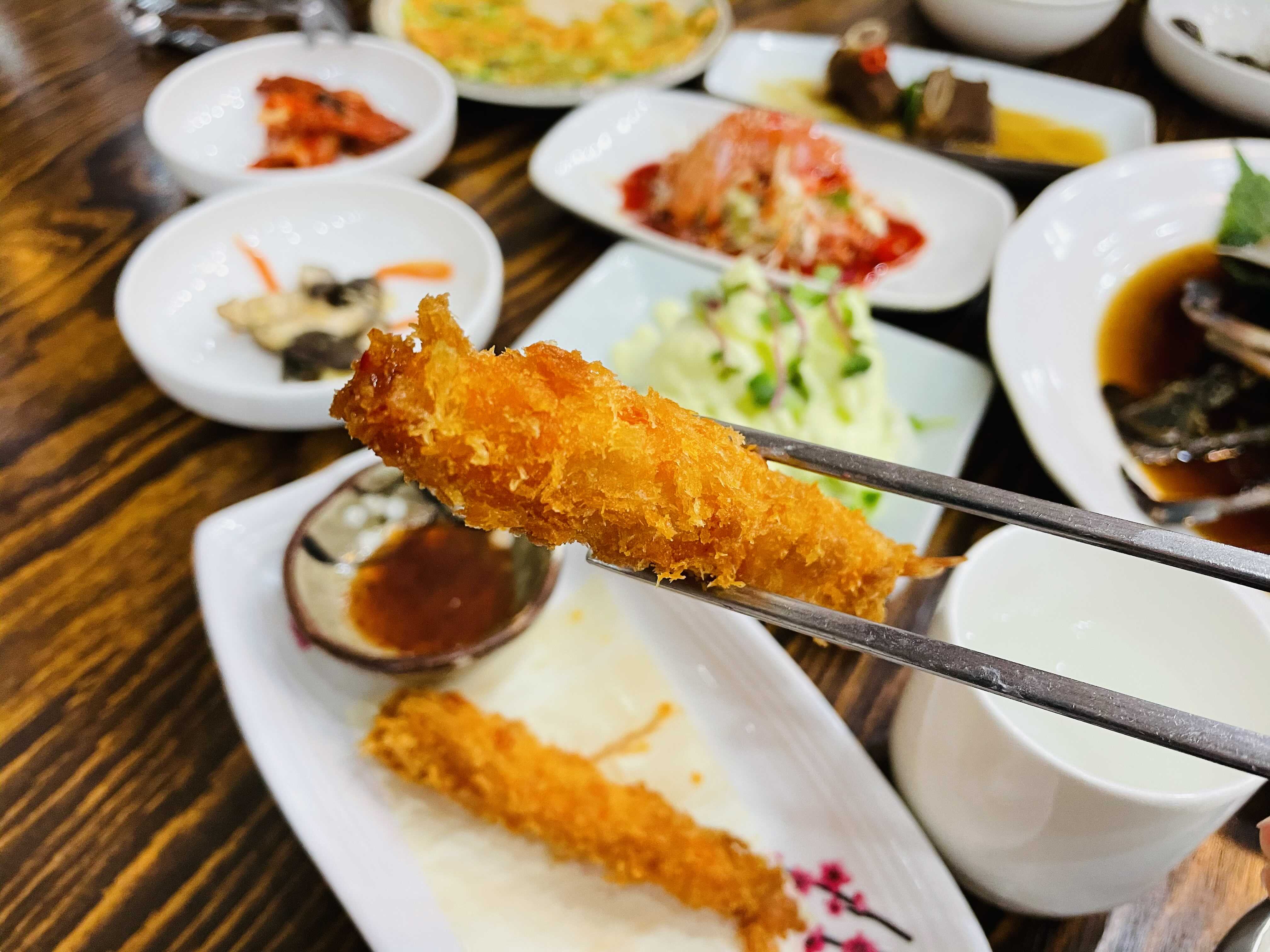 같이 나온 밑반찬들도 다 맛있었는데, 새우튀김은 바로 튀겨서 나오기 때문에 뜨거울 때 먹으니 너무 맛있더라고요.