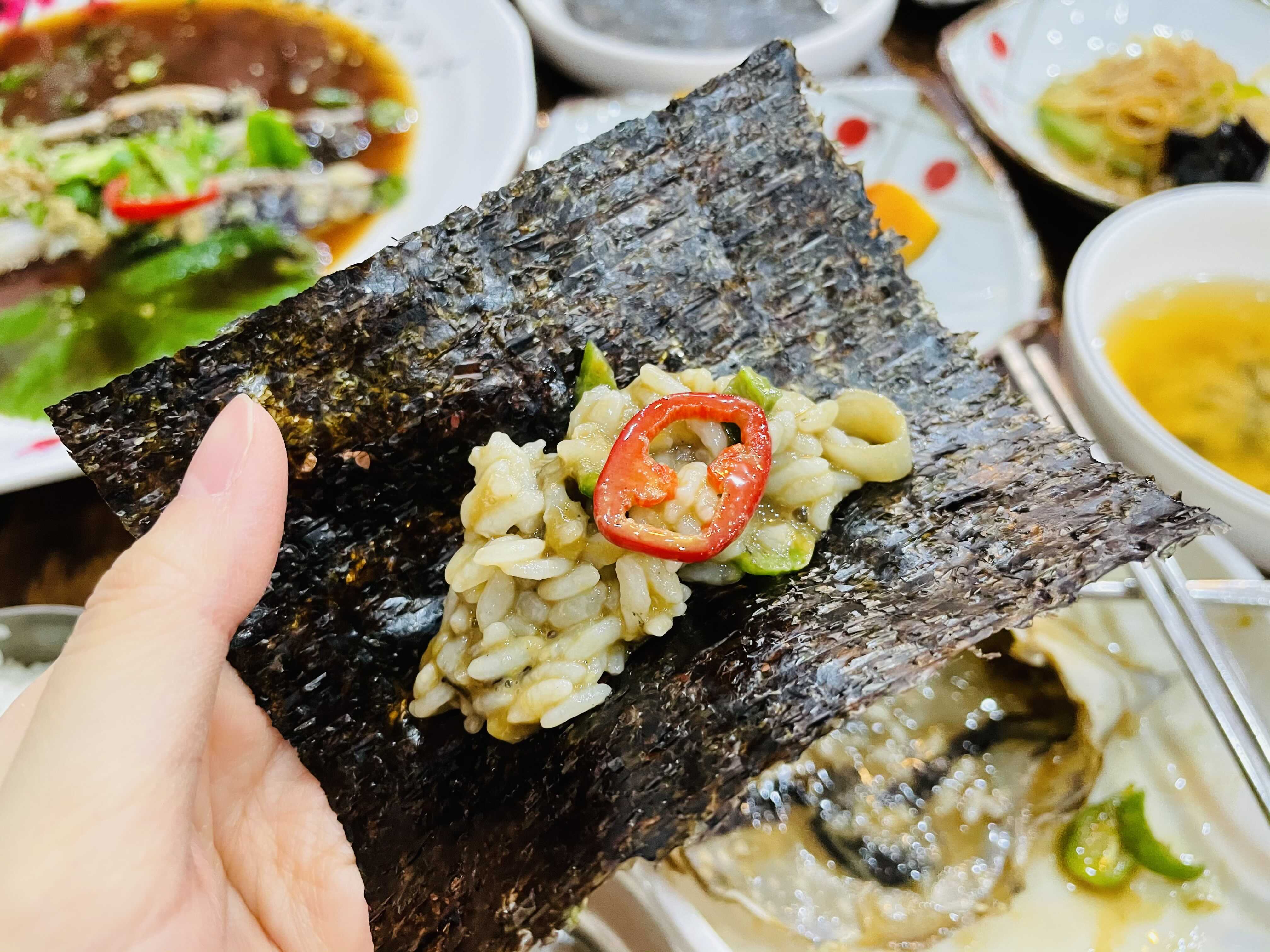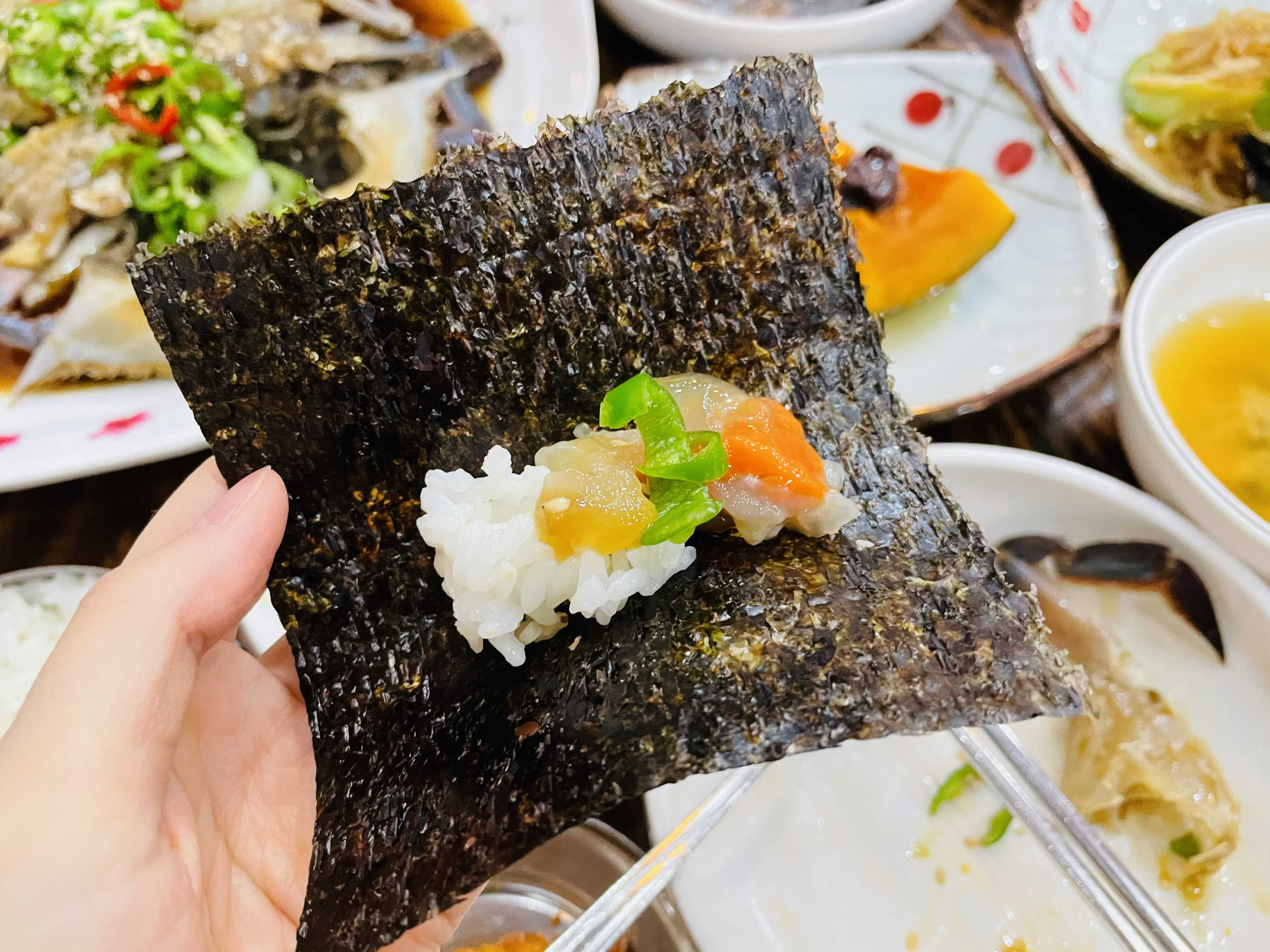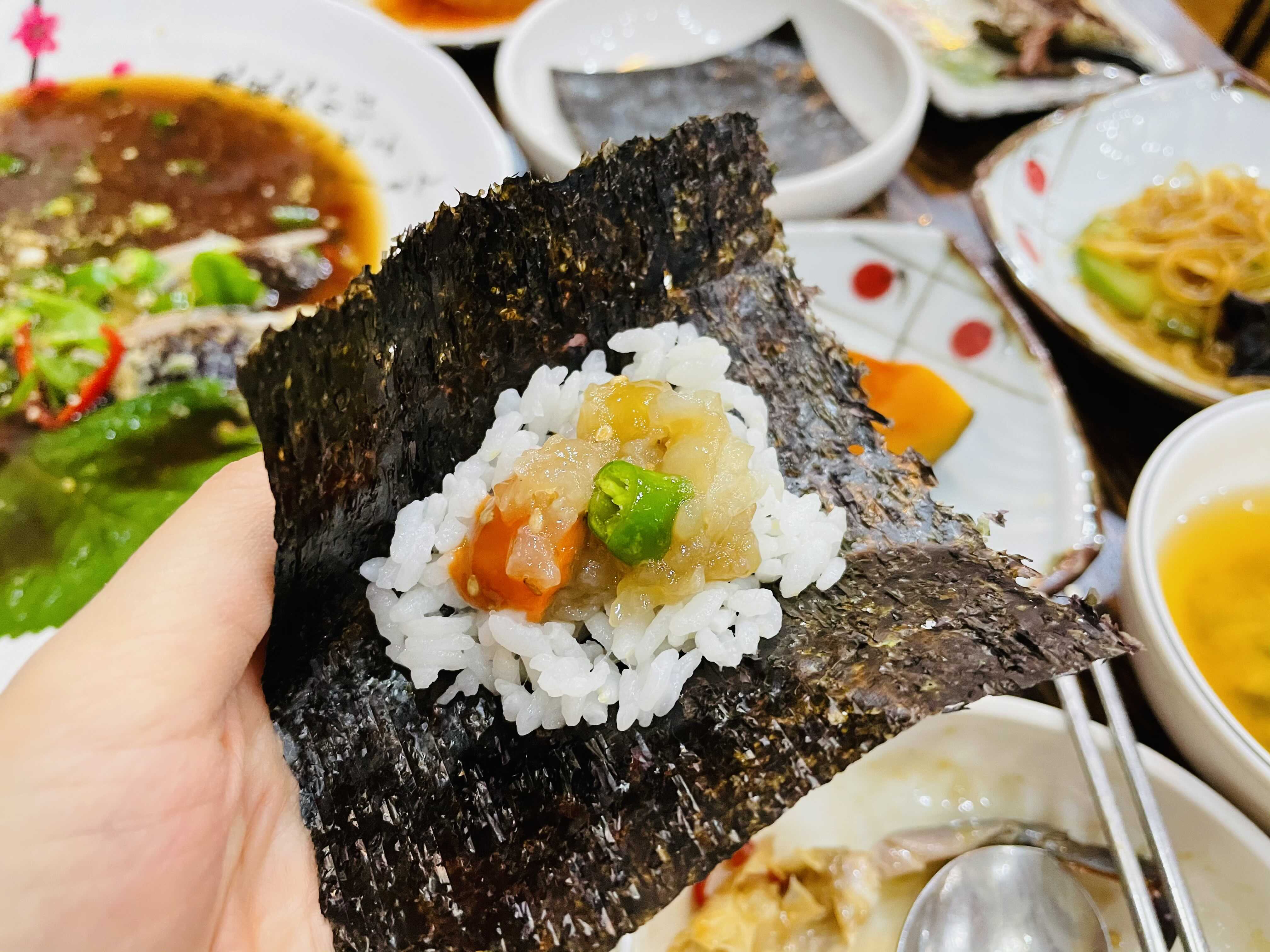 한 숟가락 크게 떠서 먹어도 맛있고, 김에 싸서 먹어도 맛있어요. 일단 게가 신선하고 살이 통통하게 올라 게 자체가 맛있다 보니 간장 소스는 거들 뿐이더라고요.
