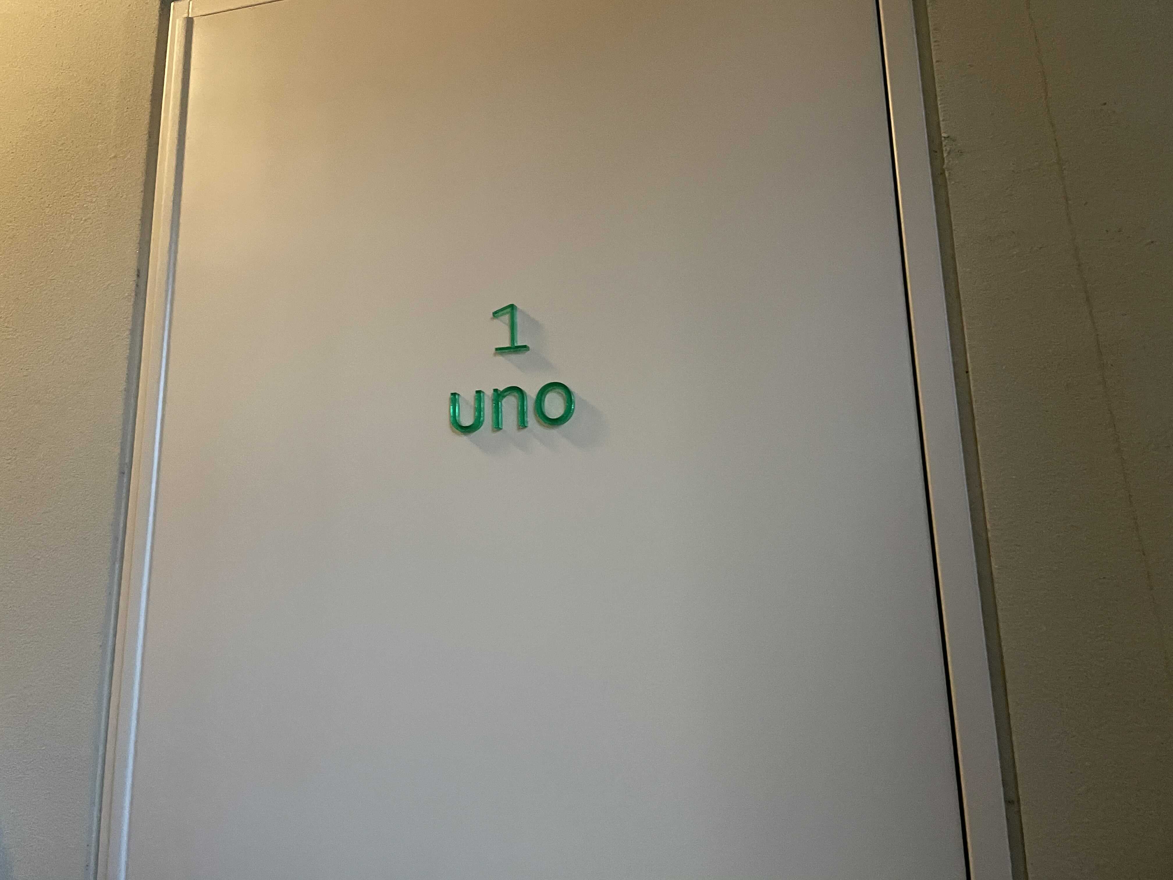 문을 열고 들어가면, 1호실과 2호실 문이 보입니다. 저희는 가장 아담한 사이즈의 1호실(uno)을 예약했어요. 객실과 가격은 다음과 같습니다.