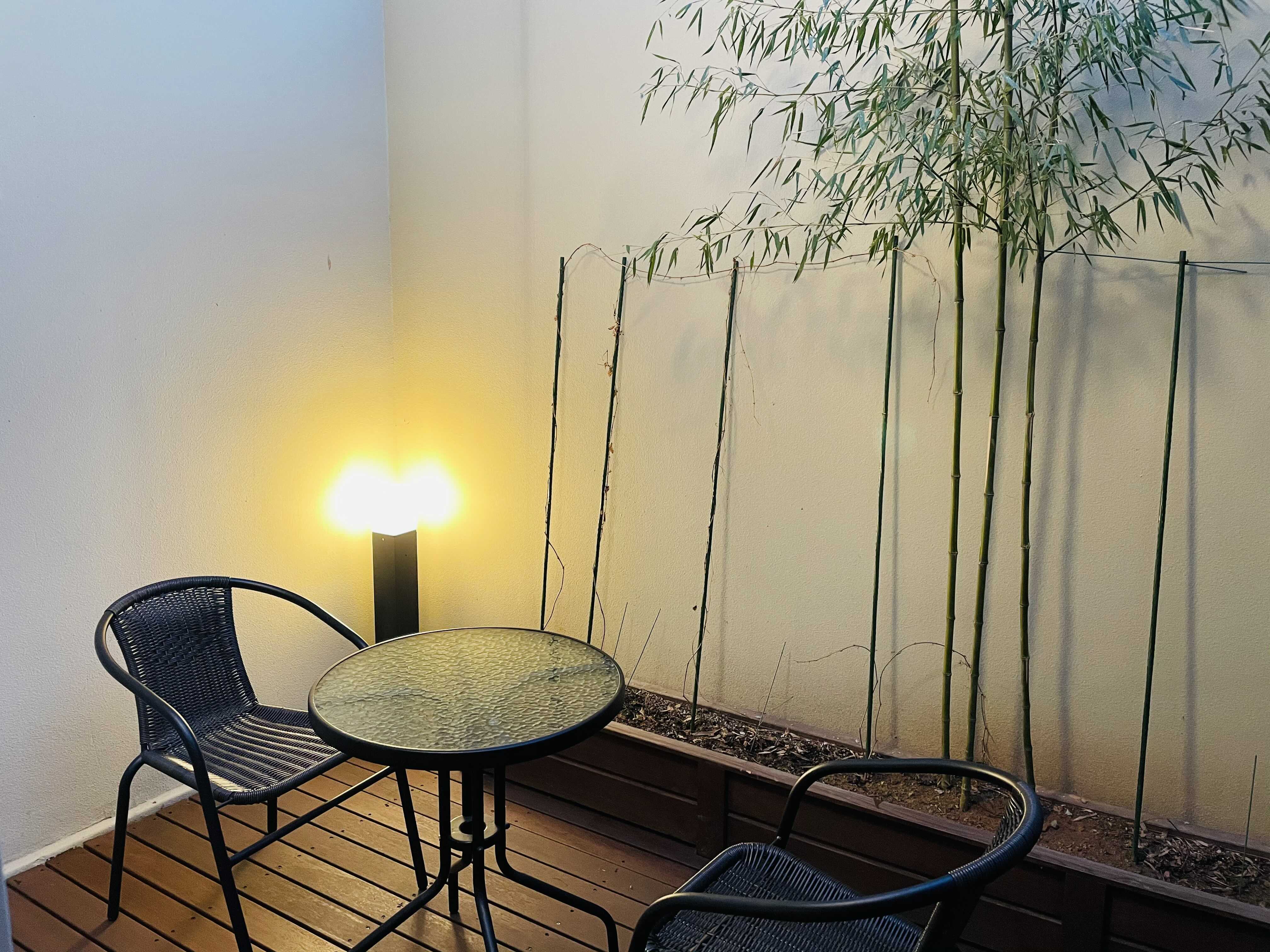 침대 건너편 문을 열면 대나무가 심어진 베란다가 있습니다. 프라이빗한 공간이라, 날씨가 좋을 땐 베란다에 앉아서 차 한잔 마셔도 좋을 것 같아요.