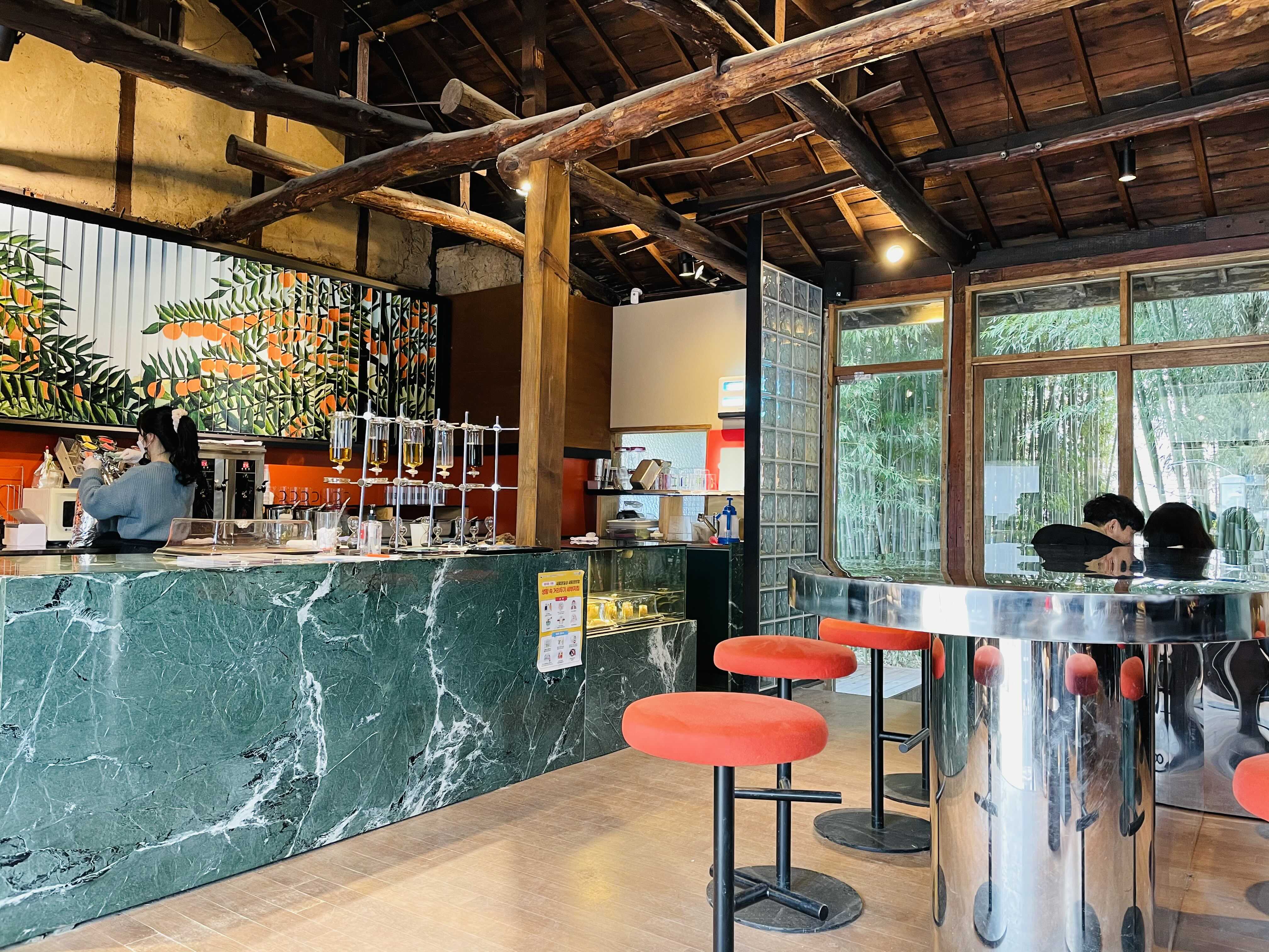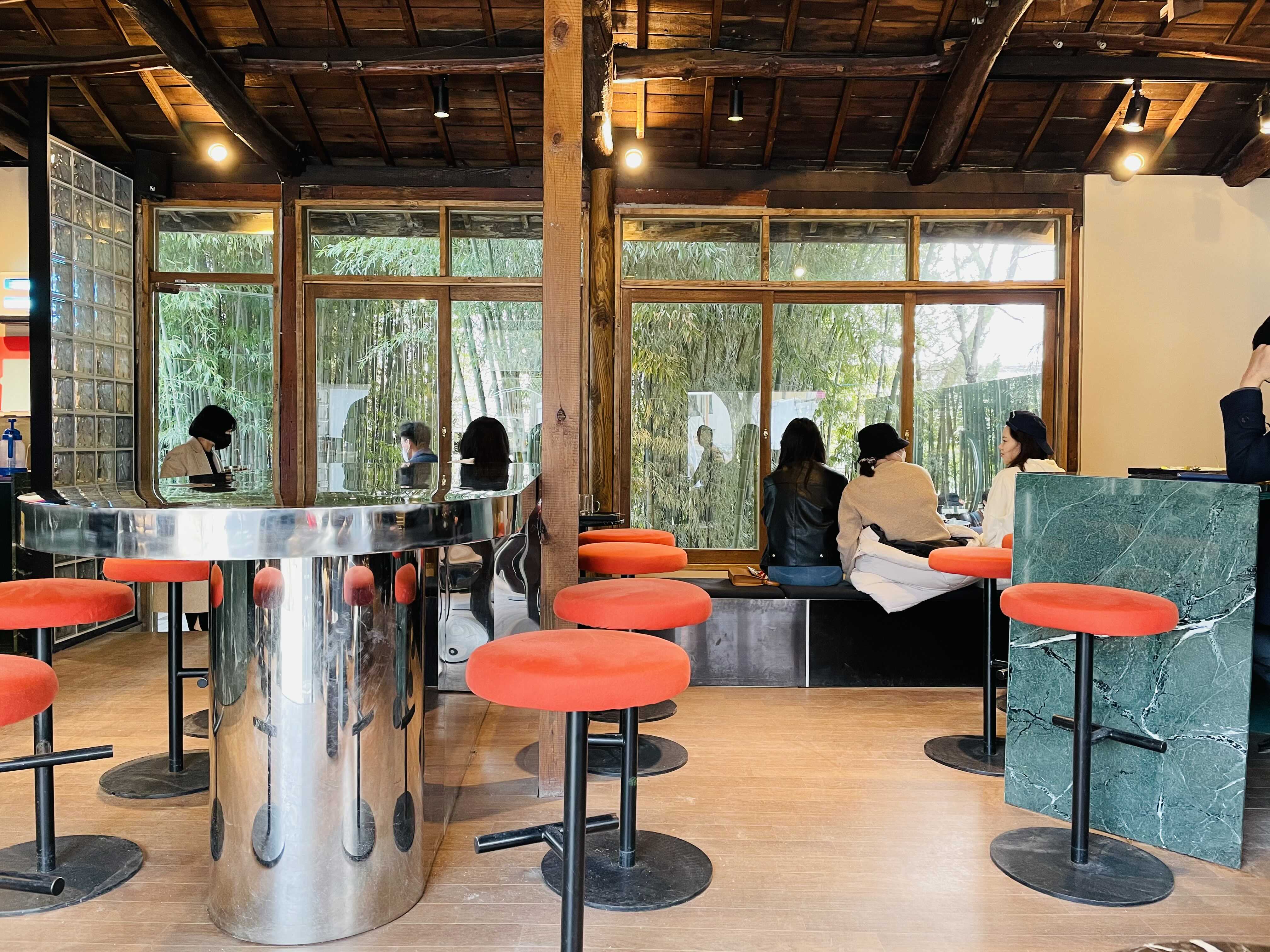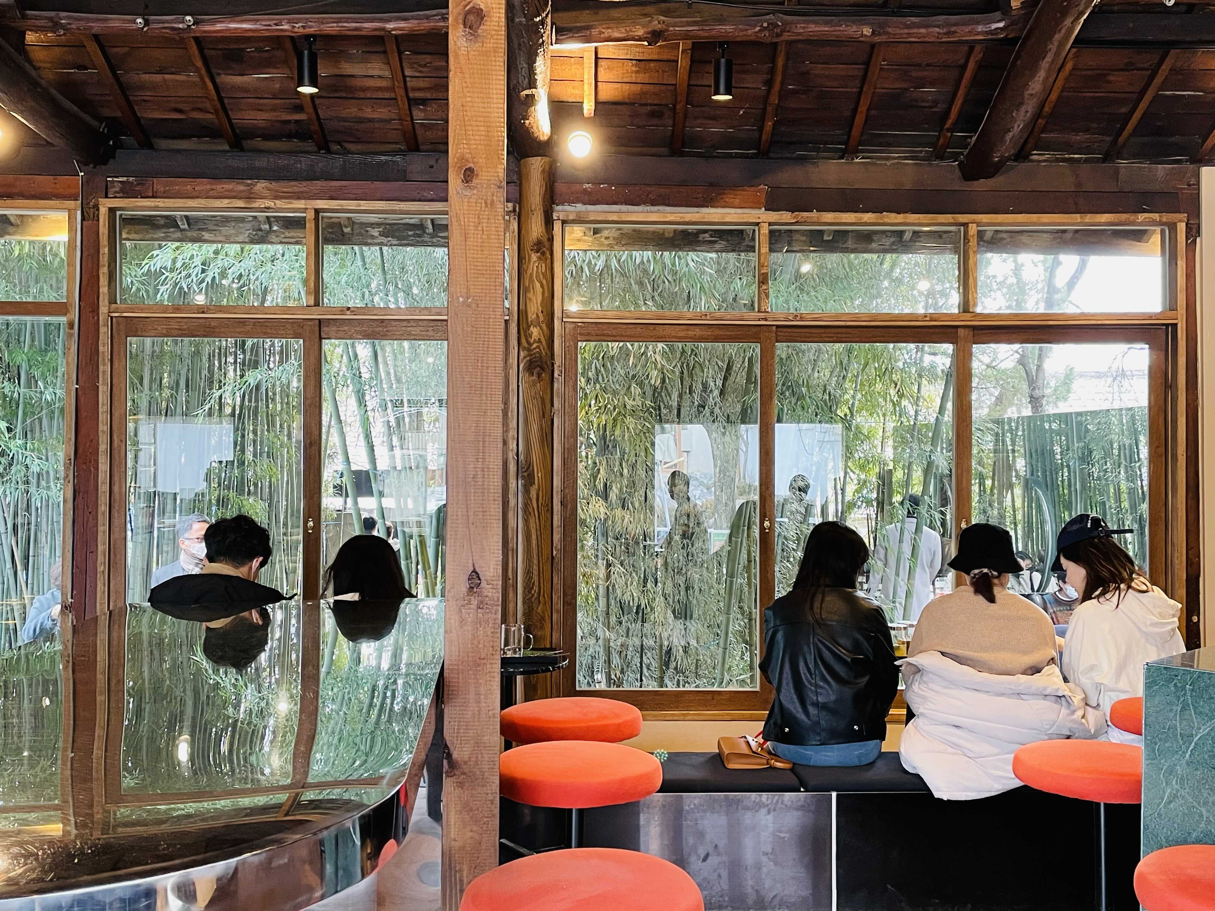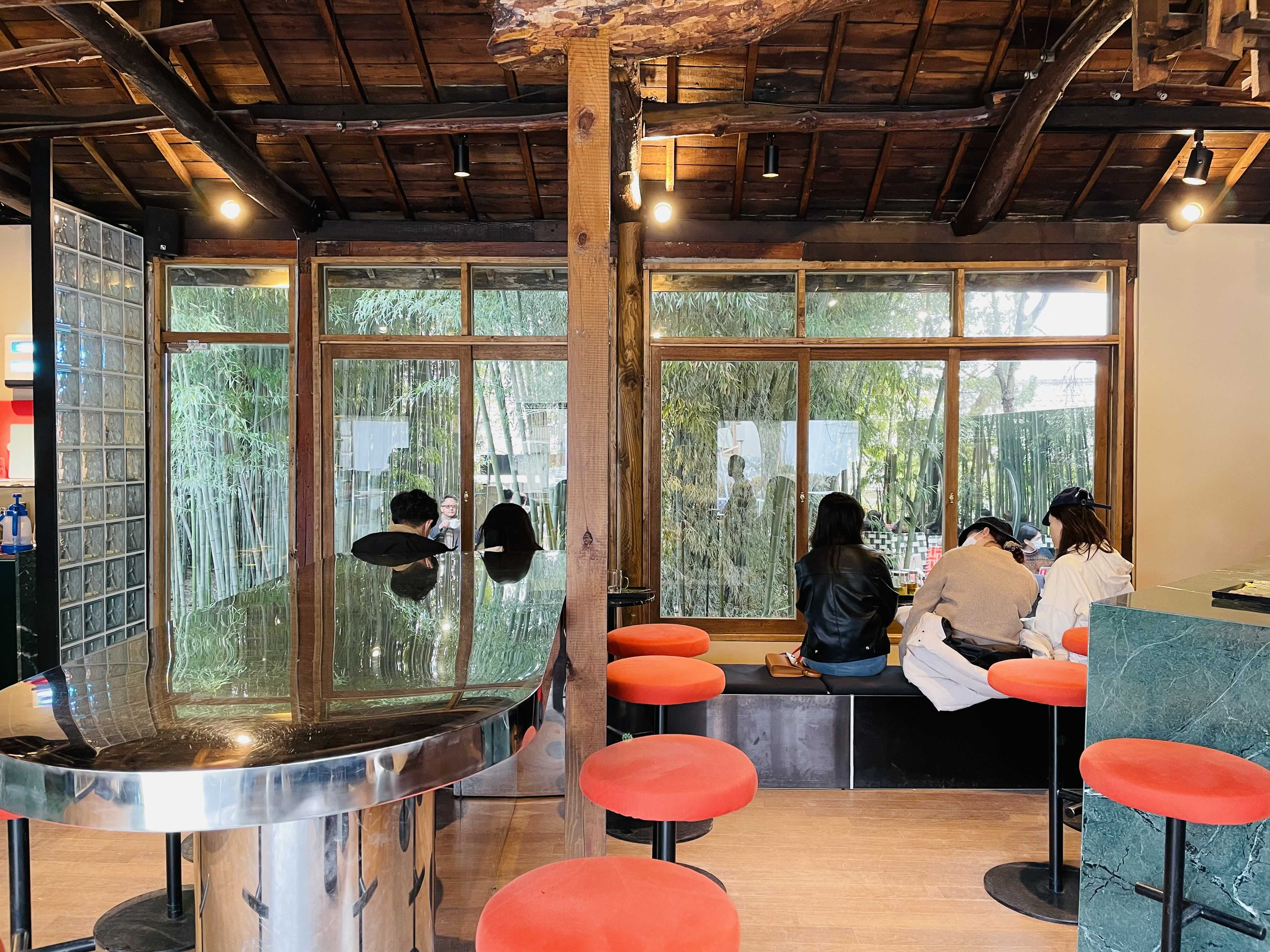 대나무숲 사이로 야외 좌석들도 마련되어 있는데, 날씨가 꽤 쌀쌀해서 저희는 실내에 앉았어요.