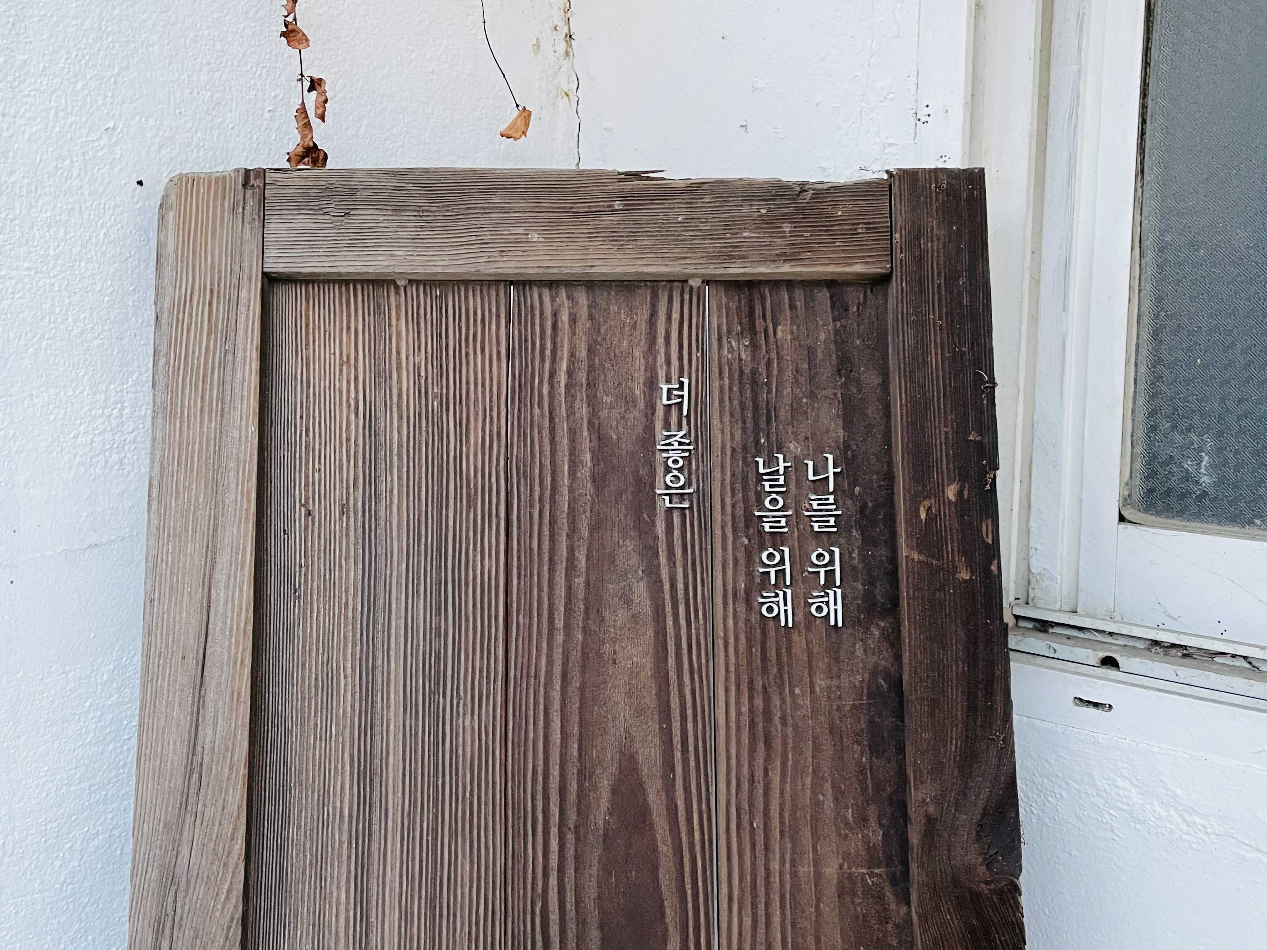단정하게 쓴 숙소 간판과 낡은 문에 적힌 짧은 문구들도 예쁘네요.