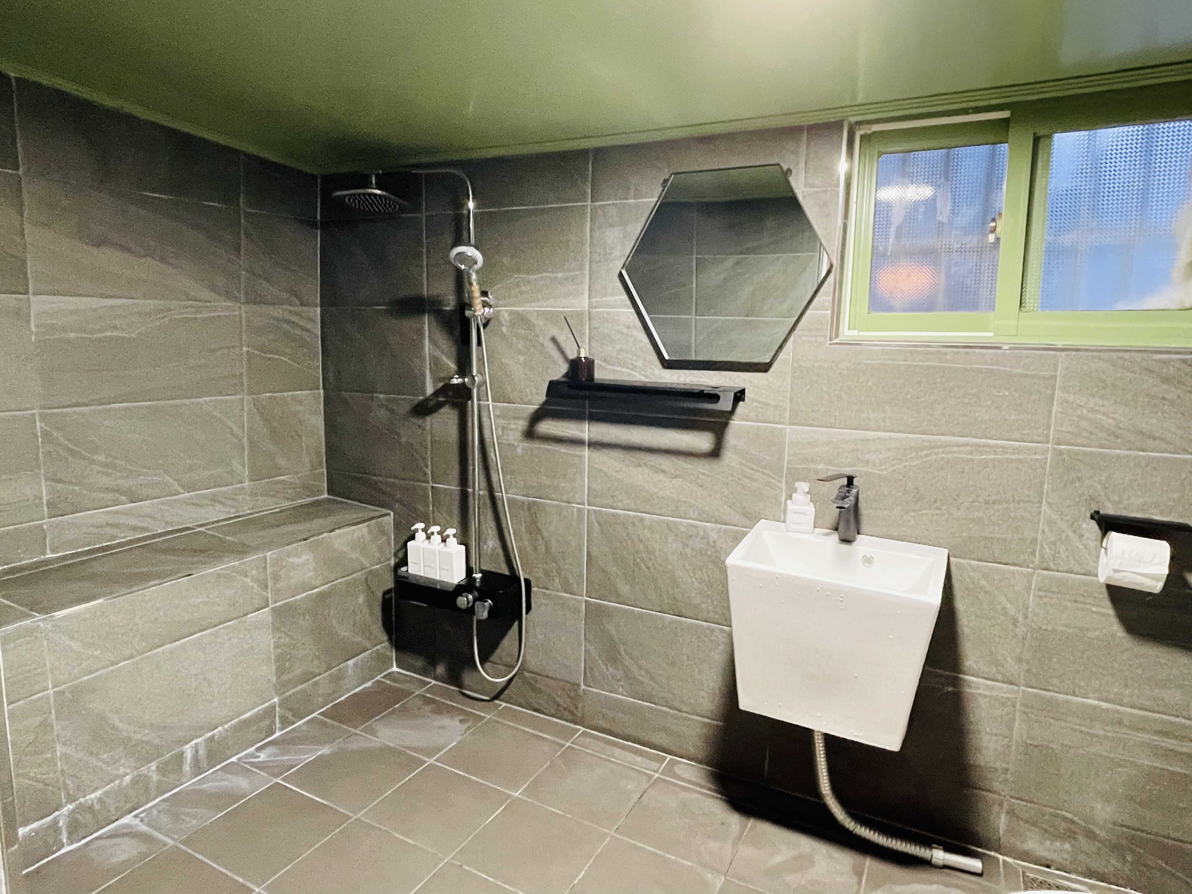 화장실은 현관 바로 오른쪽에 있는데, 아무래도 한옥이다보니 겨울에 화장실이 썰렁한 건 어쩔 수 없겠더라고요. 대신 히터가 달려있어서 샤워할 때 아주 춥진 않았어요.