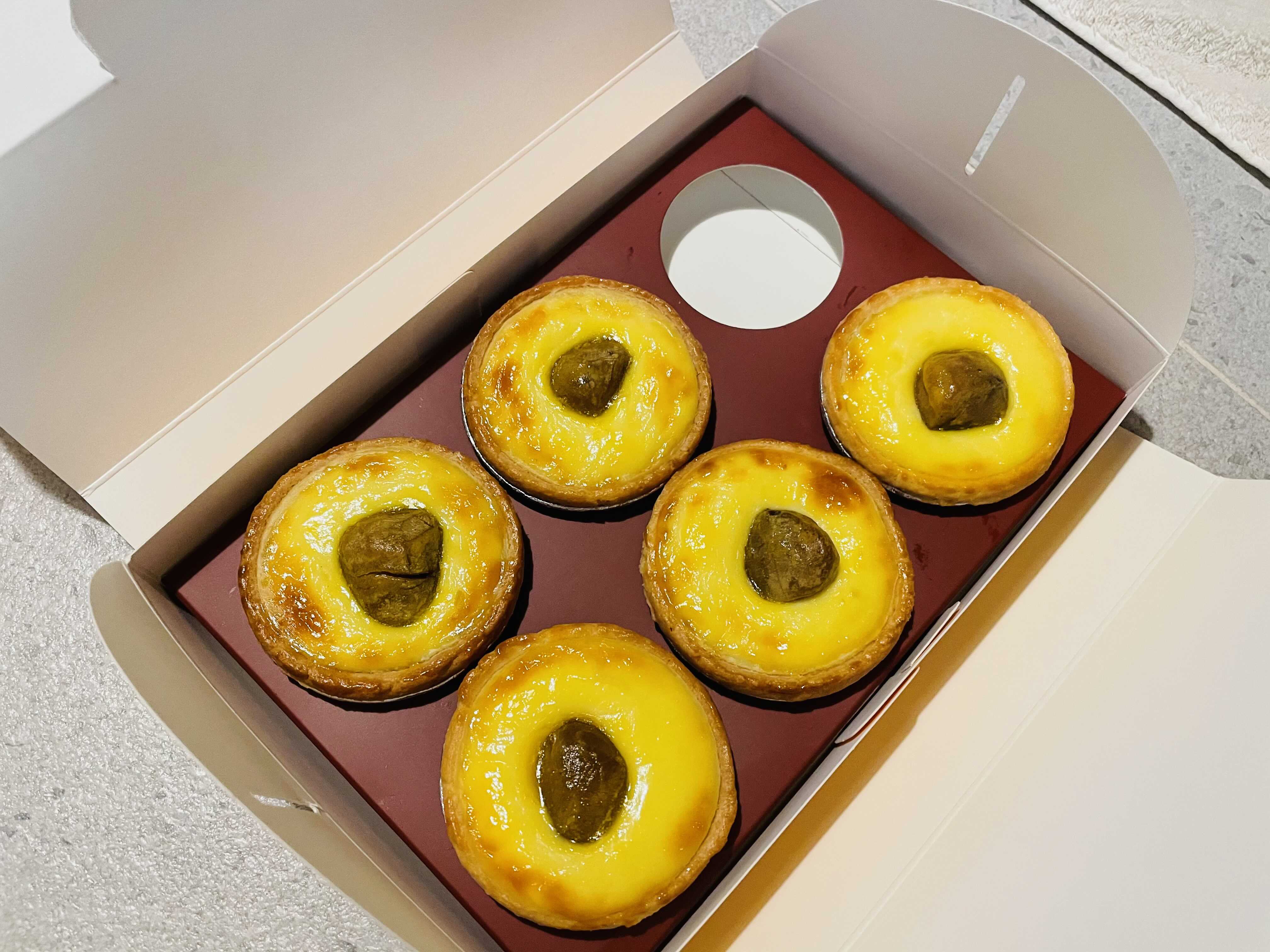 노란 타르트 위로 알밤이 먹음직스럽게 얹어져 있습니다.