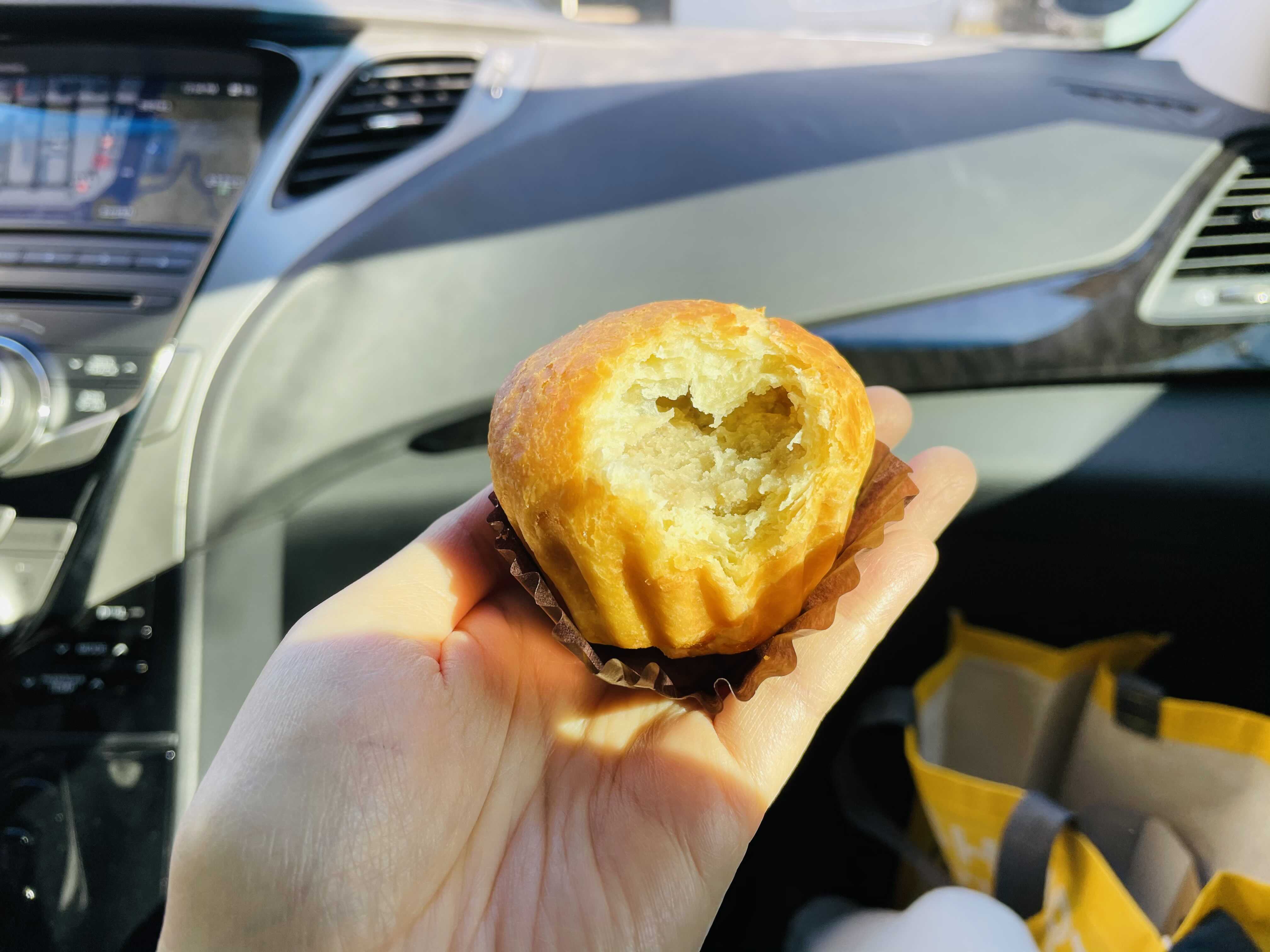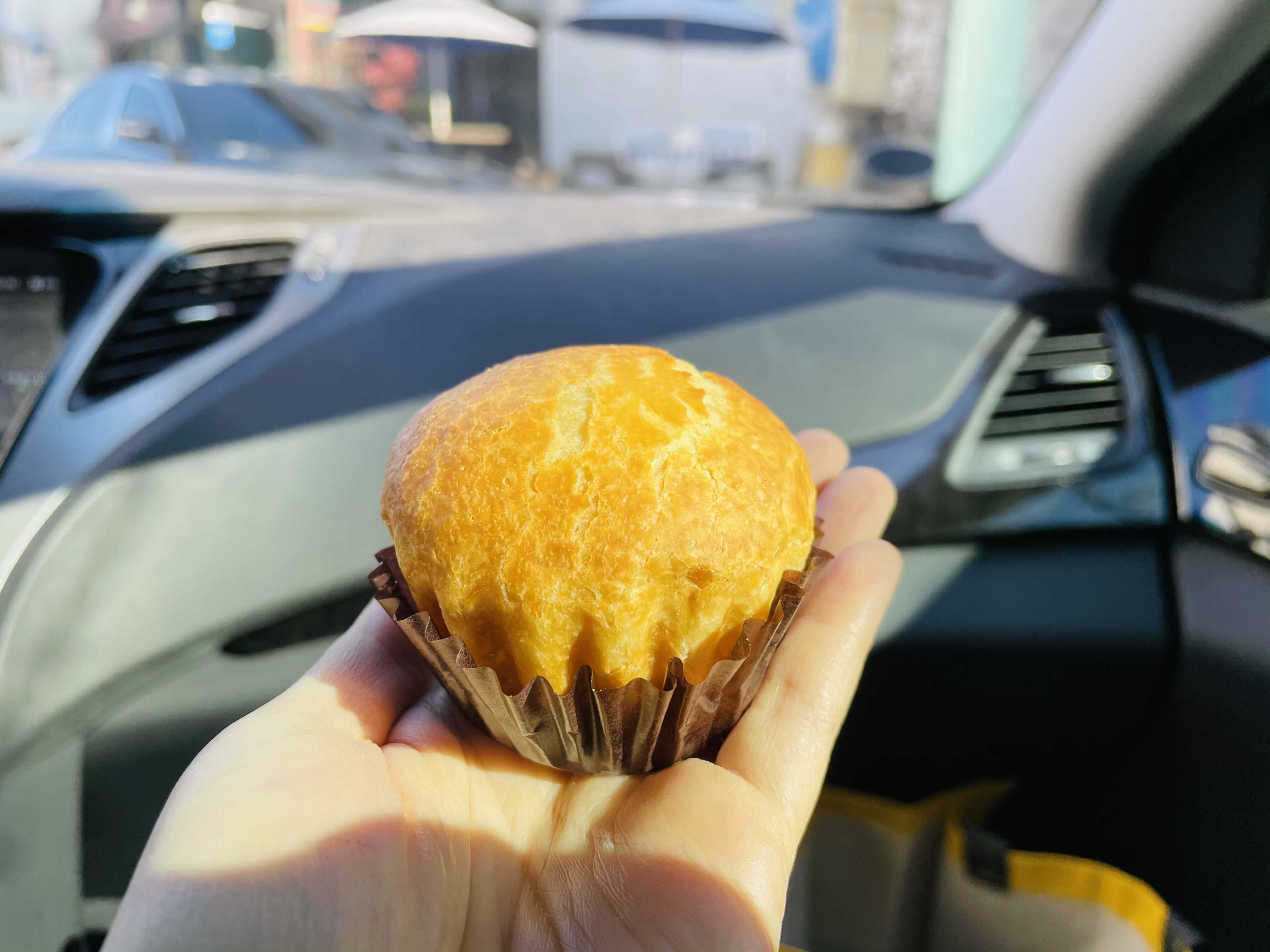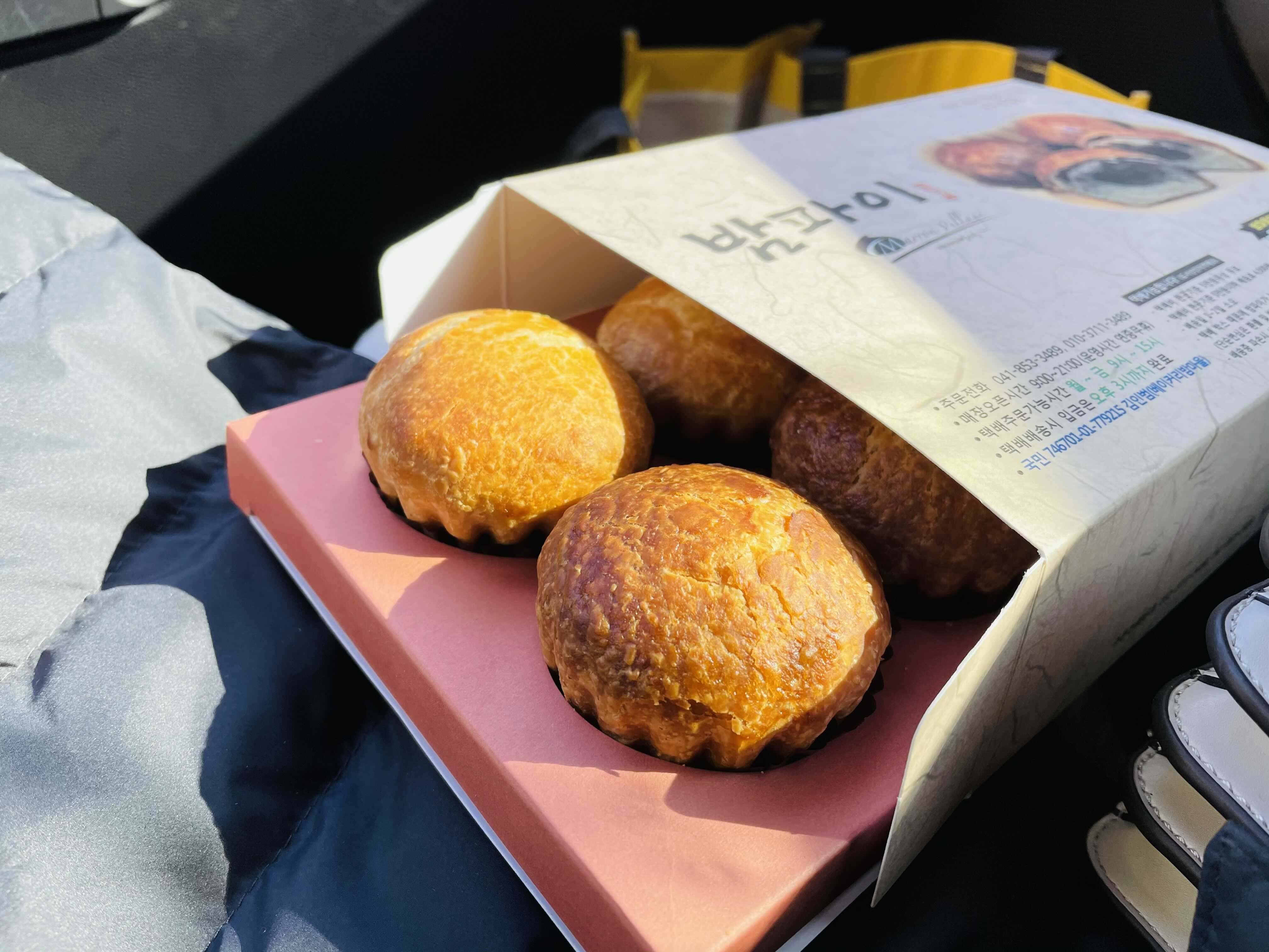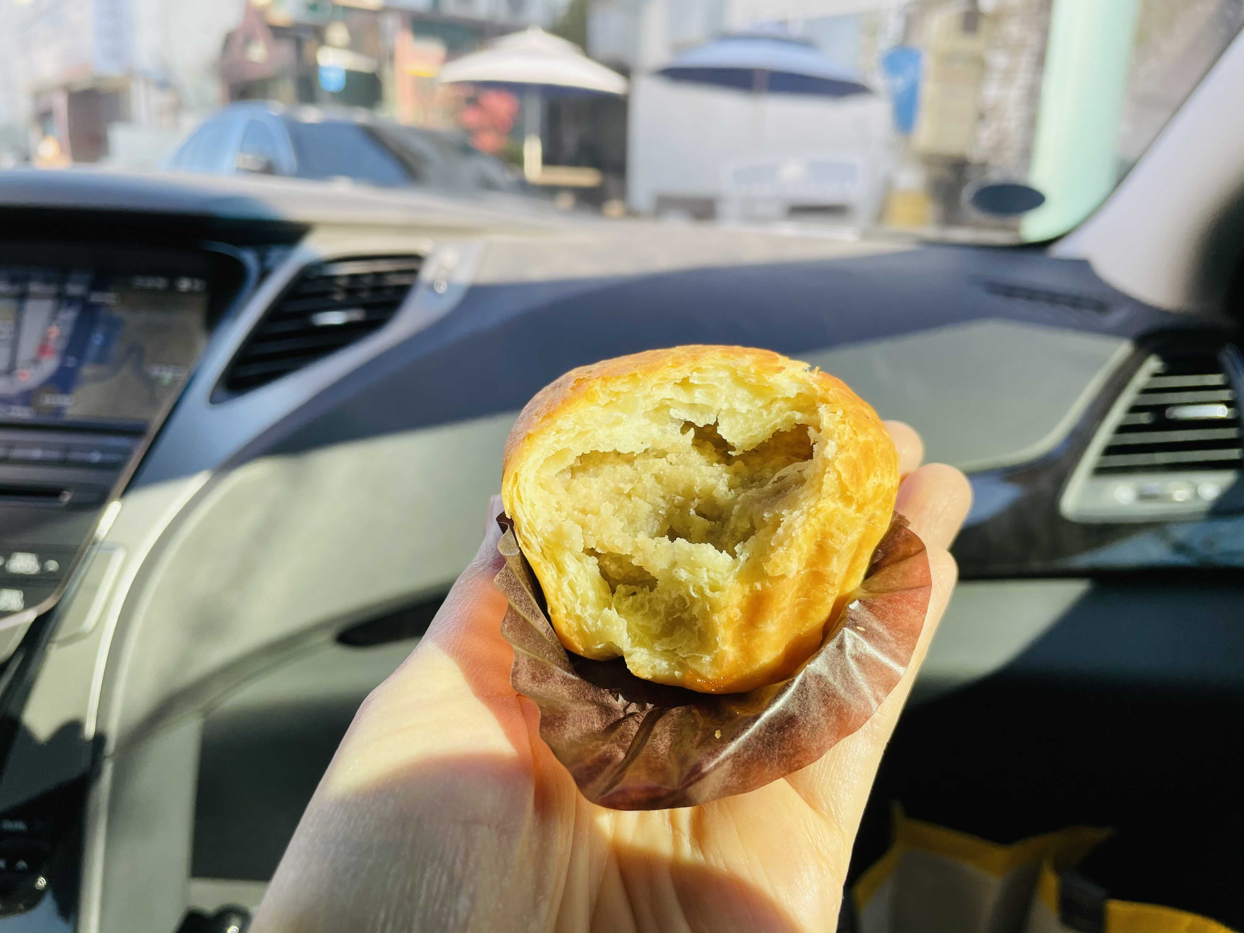 빵들을 포장한 다음, '밤파이'는 참지 못하고 차 안에서 바로 꺼내봤어요ㅎㅎ