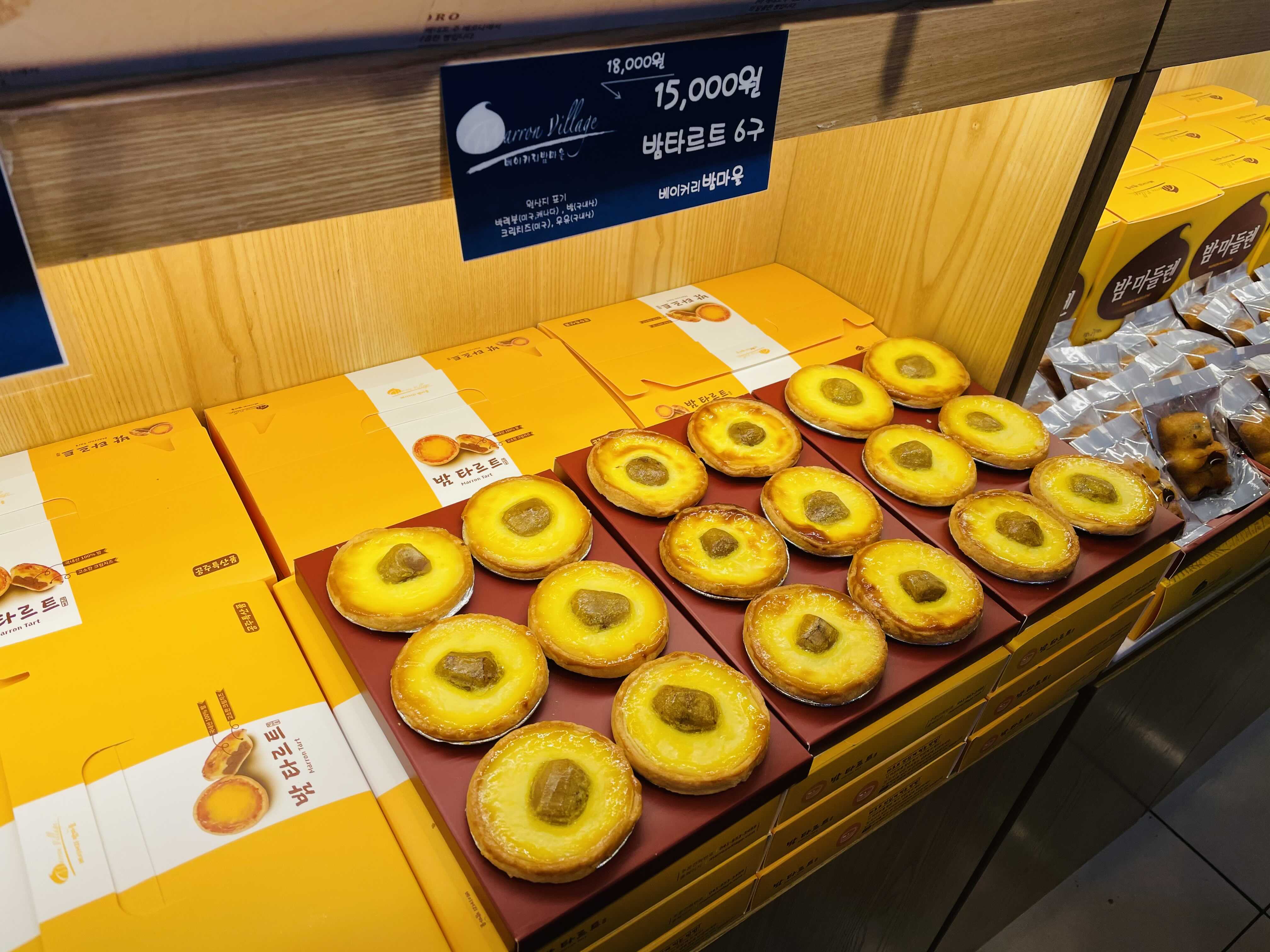 '밤 타르트(3,000원)'는 최근에 나온 신제품으로, 크림치즈가 가득 들어간 타르트에 알밤을 올린 빵이에요. 이것도 세트로 구매 시 6개 15,000원으로 좀 더 저렴하게 구매 가능합니다.