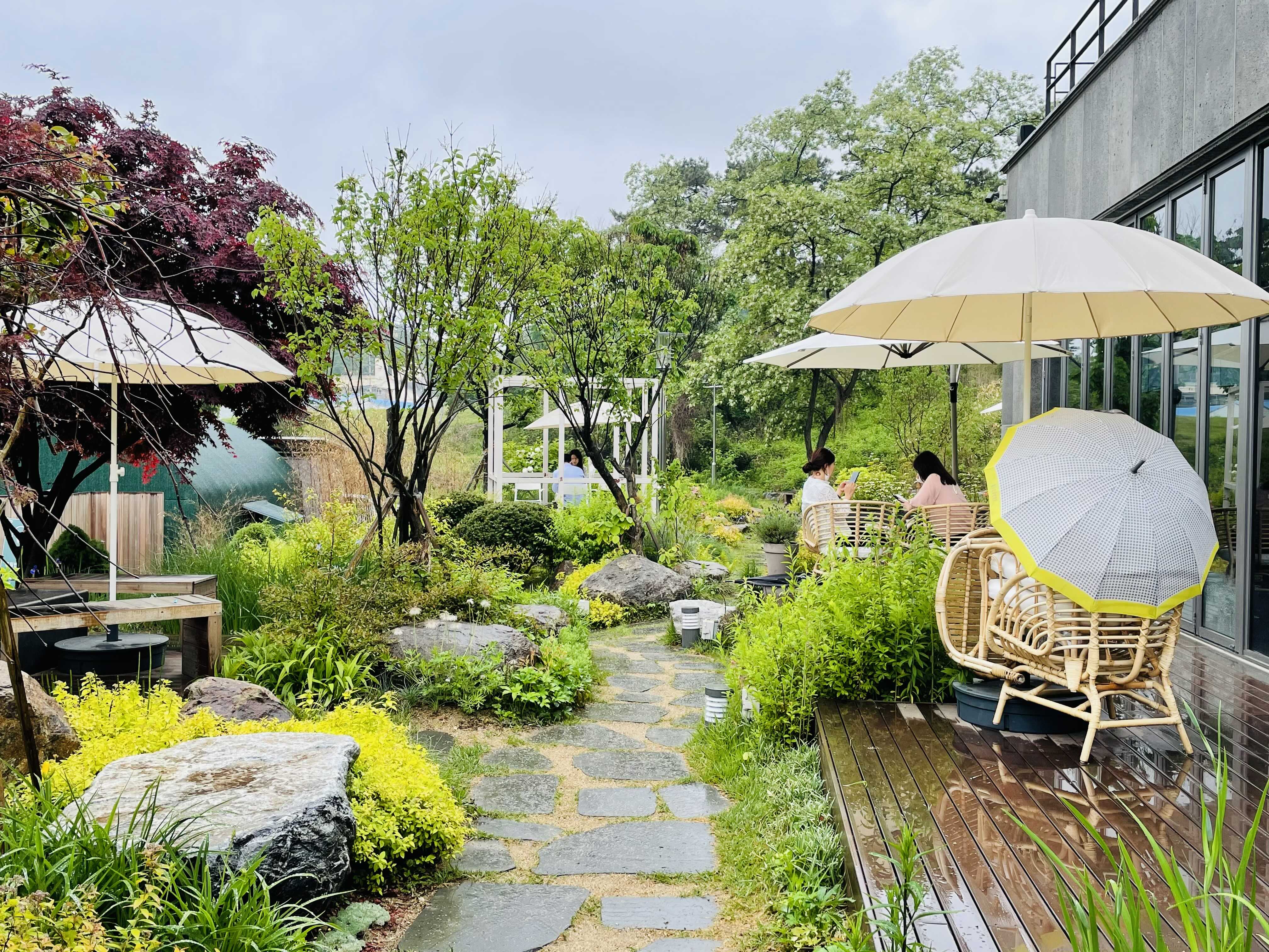 주변이 다 산이고 앞뒤 정원이 꽤 넓어서 카페 주변을 돌아보는 재미도 있었어요. 정원을 아기자기하게 잘 꾸며놓으셨더라구요. 비가 와서 더 운치가 있었던 것 같기도 해요. 오직 이 카페를 가보기 위해 1시간을 이동했지만, 그럴만한 가치가 있는 곳이었습니다 : )