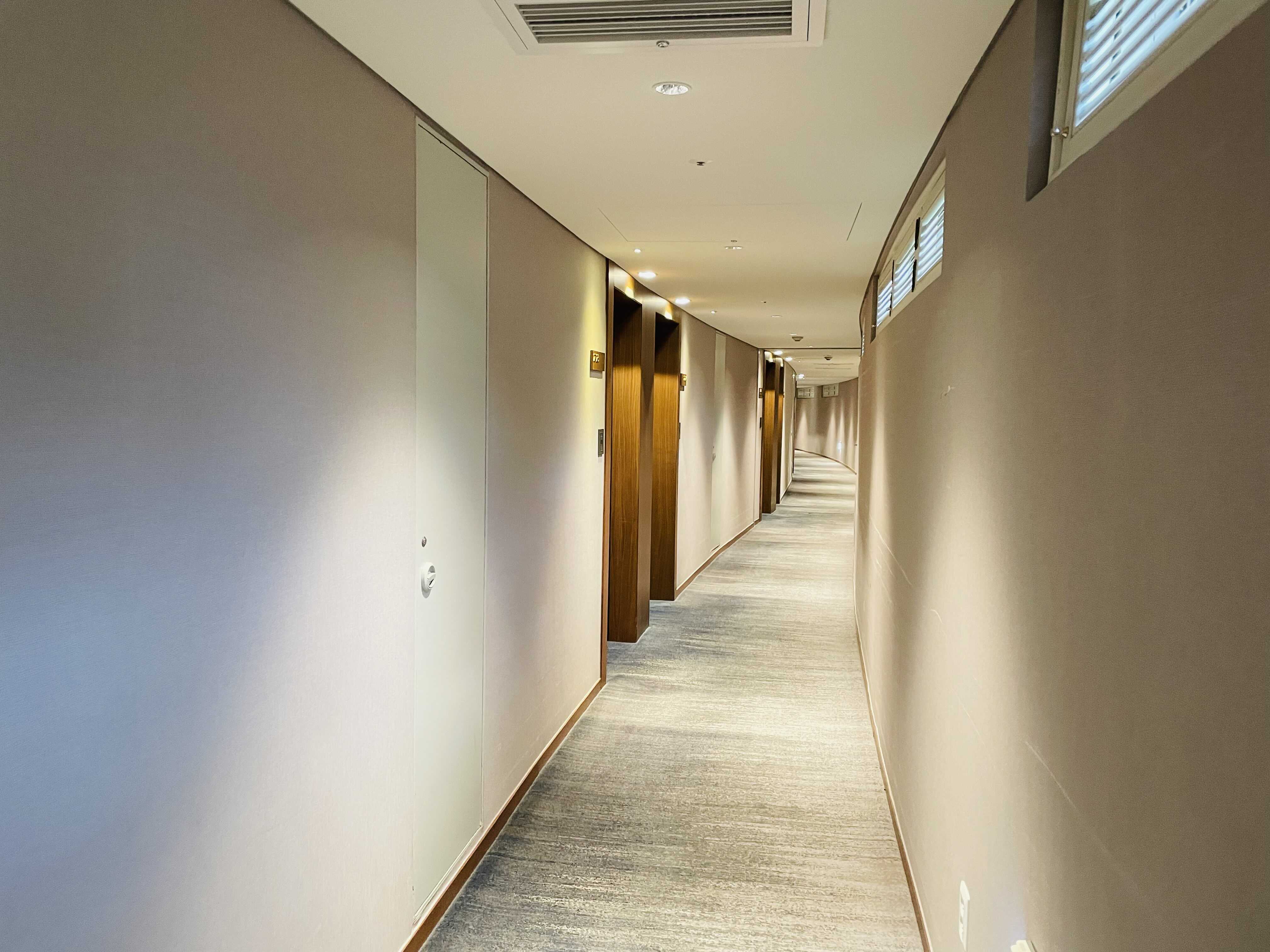 곡선의 복도를 따라 안내받은 객실로 가봅니다. 객실 키 마저 나무 재질로 되어있네요.