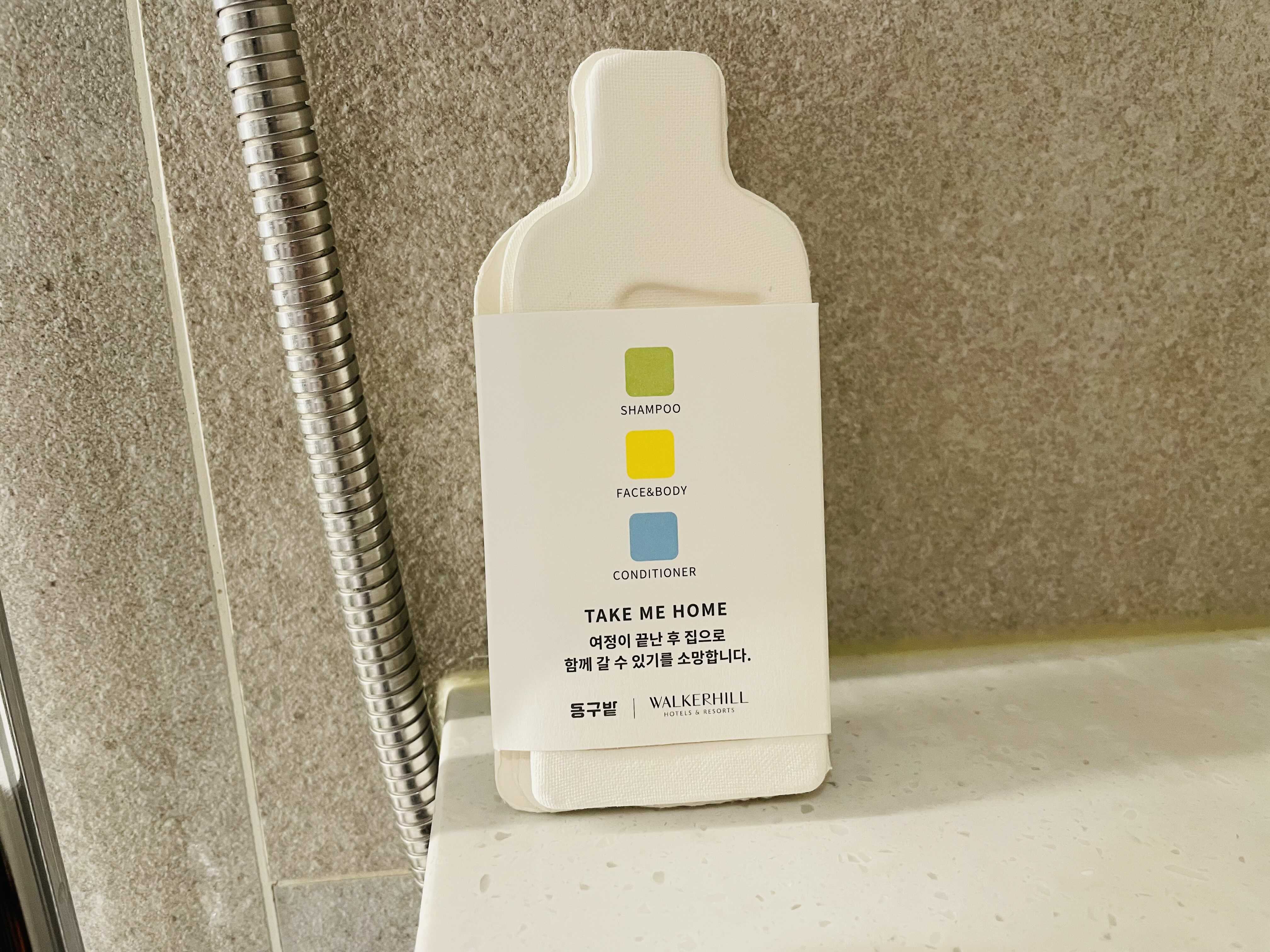2018년에 리모델링을 해서인지 화장실도 꽤 넓고 깔끔했어요. 역시나 다른 워커힐 호텔처럼 동구밭 어메니티가 준비되어 있습니다. 하지만 욕조를 좋아하는 저는 샤워부스만 있는 건 아쉬웠어요.