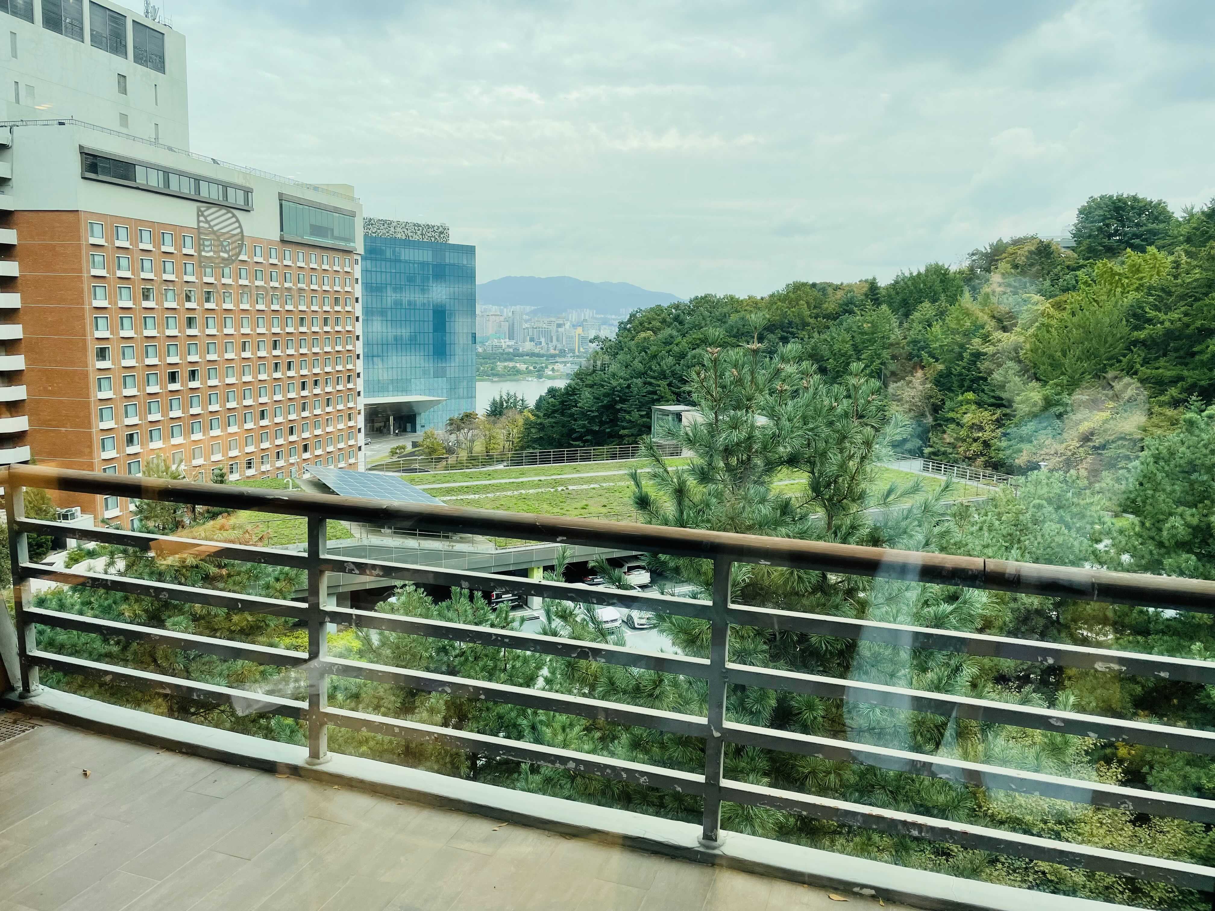 호텔 컨셉이 '숲 속의 아지트'이다 보니, 인테리어가 대부분 목재와 식물로 꾸며져 있고 어느 창으로 내다보나 아차산의 풍경이 한눈에 들어와 눈과 마음이 정화되는 느낌이었어요.