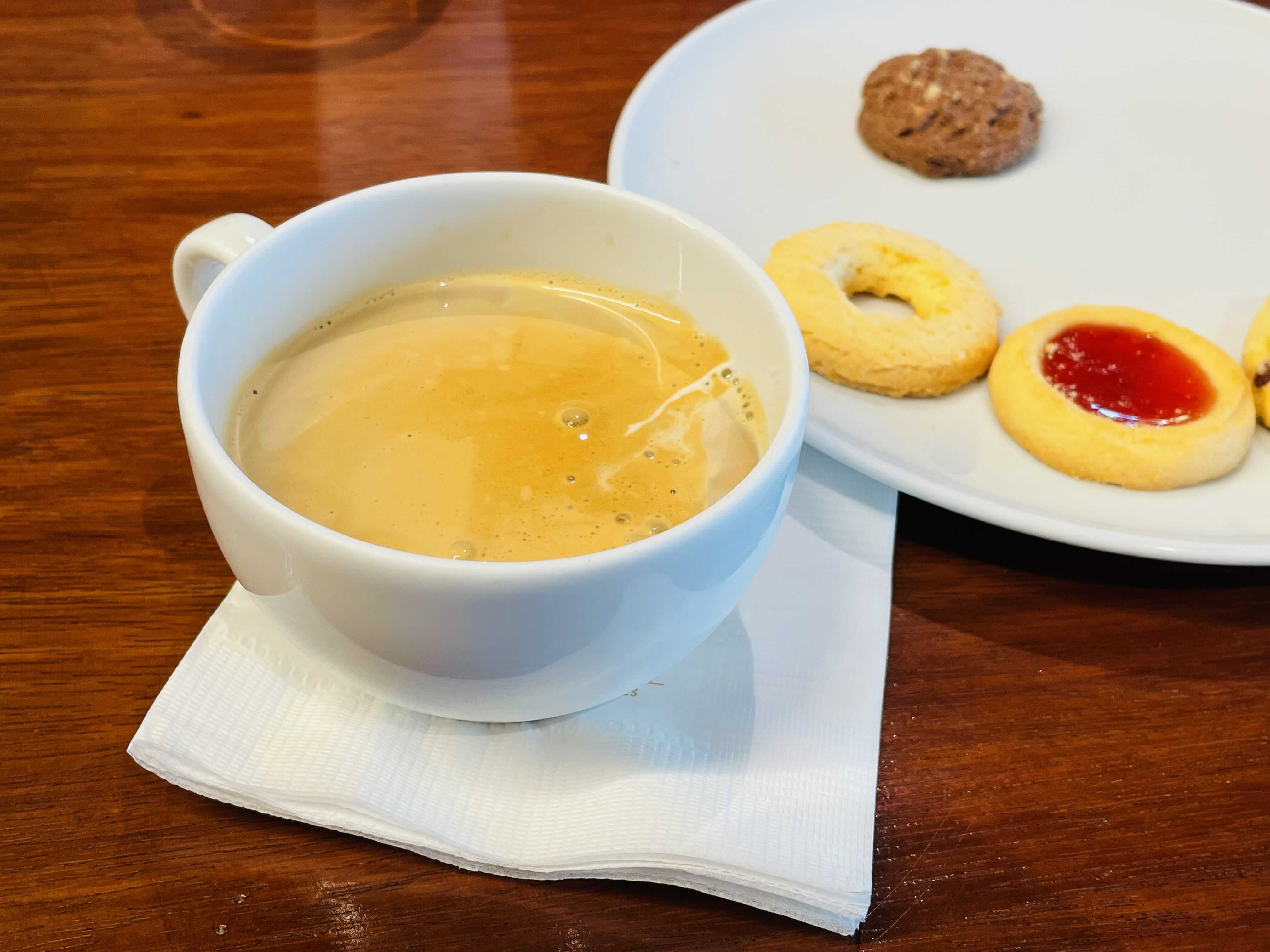 오후 3시 Light snactk 타임에 찍은 사진이에요. 이 시간에는 커피, 우유, 차 그리고 4가지 쿠키가 제공되는데, 제공한 쿠키가 다 소진되면 다른 종류로 바뀌어서 다양한 쿠키를 맛볼 수 있어요. 원두가 맛있기로 소문난 폴바셋 커피가 제공되고, 디카페인도 있어서 카페인에 예민하거나 임산부 분들도 드실 수 있어요.