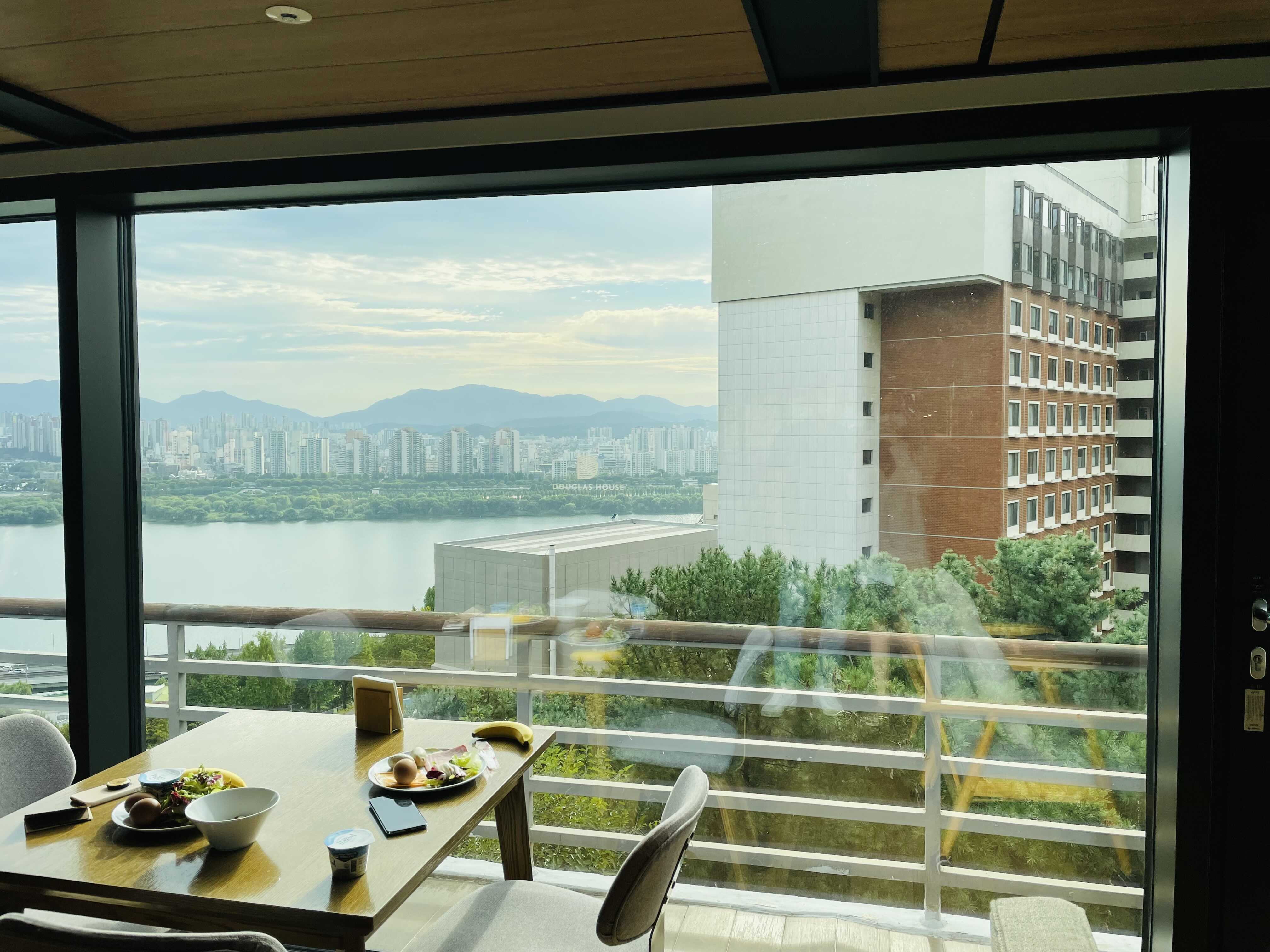 아침이나 오후에 라운지를 이용하신다면, 조금 일찍 가셔서 꼭 창가 자리에 앉으시길 추천드려요. 햇빛이 강하기는 하지만 정말 한강뷰가 끝내줍니다ㅎㅎ